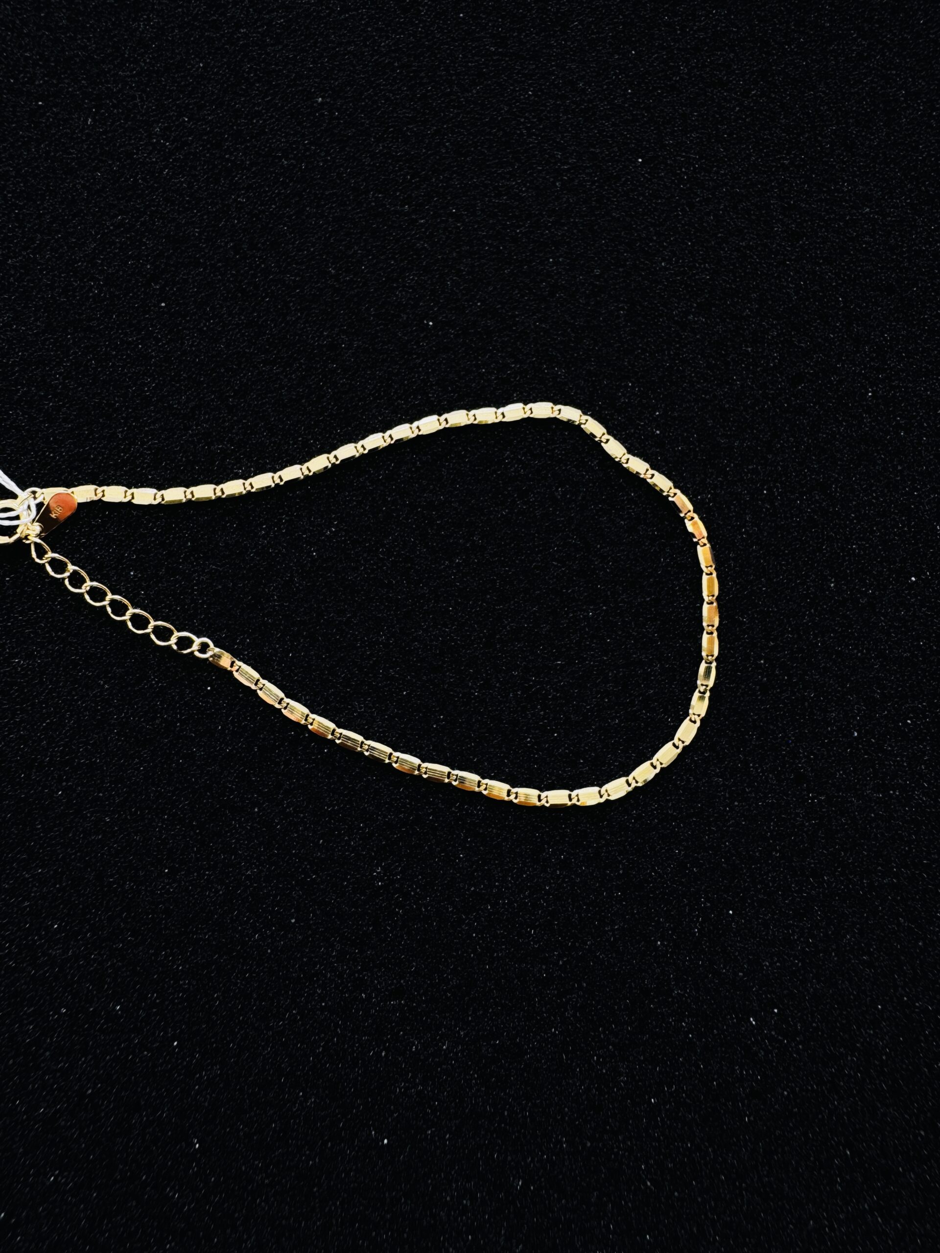 上質なK18ゴールドを使用した、洗練されたボックスチェーンブレスレット。 規則正しく並ぶ繊細なチェーンが、光を受けるたびに上品に輝きます。